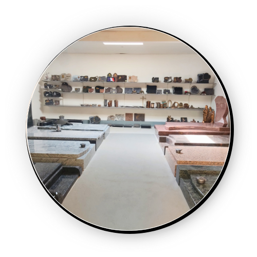 JF Services Funéraires met à votre disposition une salle d’exposition et un espace boutique à Réchésy. Vous y trouverez une sélection de monuments funéraires en granit, d’accessoires et d’ornements, ainsi que des exemples de gravures et de finitions. Chaque produit est présenté pour vous aider à concevoir un lieu de mémoire fidèle à vos souhaits, avec l’accompagnement personnalisé de notre équipe.